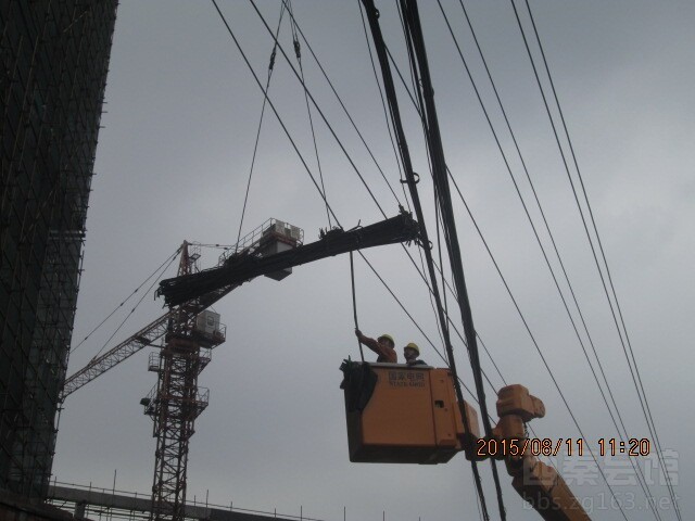 8月11日上午,自贡供电公司配电运维一班工作人员在对重点监查单位的巡视中发现,自贡市汇源房地产开发有限公司吊装钢筋时触及10kV道自线大黄桶支线4#杆至5#杆高压边相导线。由于该线路供有自贡市妇幼保健院、自贡广播电视大学等重要用户,如果造成停电将对医院工作,学校秩序造成极大影响,在这种情况下,必须采取不停电的处理措施。