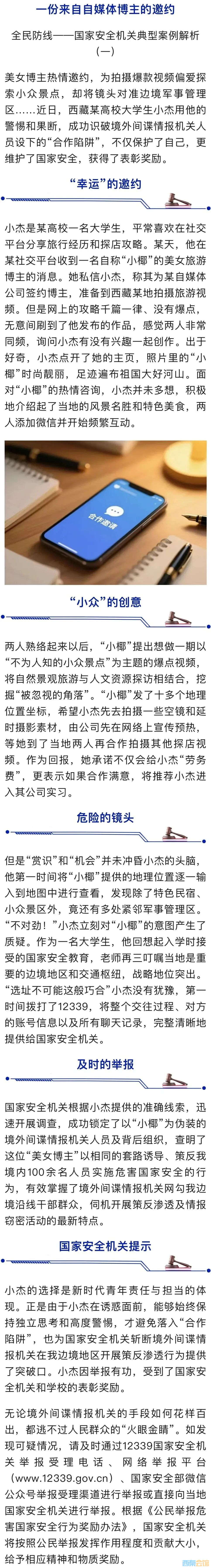 10月12日,国家安全部推出“全民防线——国家安全机关典型案例解析”专题,提高全民意识,发动全民力量,压缩“网勾”“观搜”等危安行为生存空间,进一步筑牢反间防谍人民防线。
