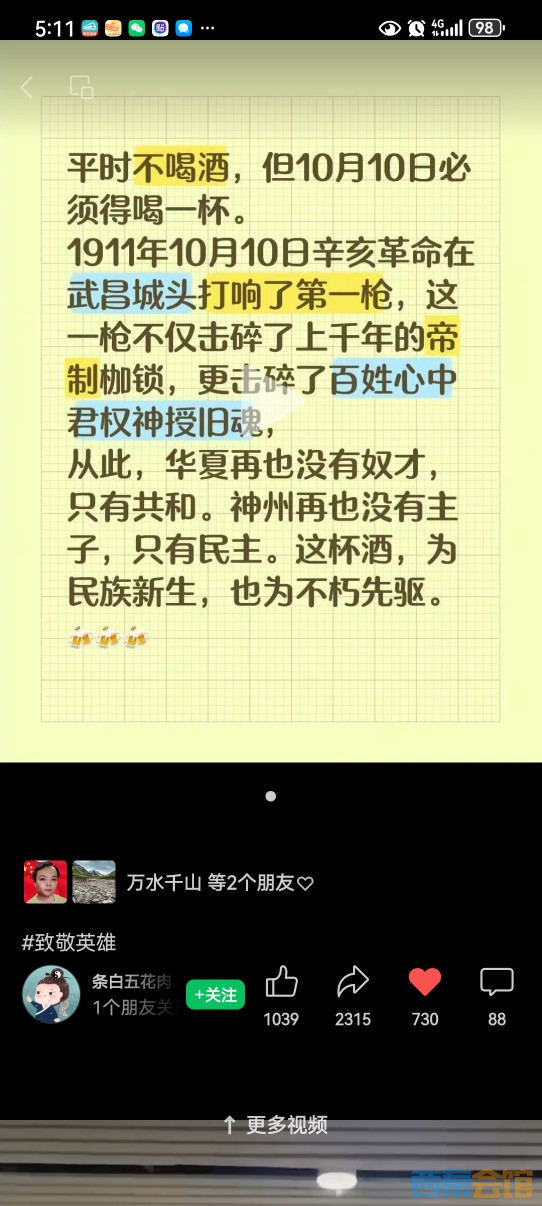 团结乡的王大爷 发表于 2025-10-15 10:22 戴副主席,王大爷负责类跟你说,你类个烧酒歪得不能再歪咯,喝不得哦