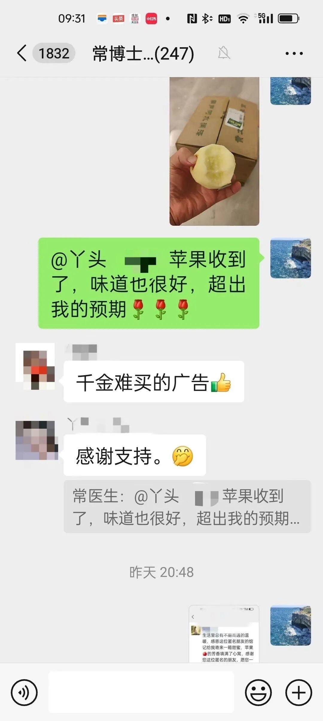 “@丫头,我买一箱大果的。” “@丫头,苹果收到了,味道也很好,超出我的预期。” 常旭是广州市番禺区中医院乳腺科学科带头人、主任医师,多年来,他坚持在网上解答全国各地乳腺疾病患者的咨询,也因此在微信上建立起了病友群。 最近,他却在群里“带”起了“货”,“卖”起了红富士苹果,病友们还纷纷点起了赞,这是怎么回事呢?  “丫头”是甘肃平凉的一名病友。2019年时,刚查出乳腺癌的她彷徨无助,在网上用不同的方式搜寻资料,后来找到了常旭、加入了病友群,在群里密集地咨询了许多治疗相关的问题。由于人在甘肃,她最终按照常旭的建议,留在了当地的大医院治疗,目前身体已经康复得挺好了。而每年几次的复查结果,她都会发到群里请常旭解读,“常大夫人挺好的,群里的人问什么问题,他都会回答。” 常旭告诉记者,在6年来多次的咨询过程中,他了解到“丫头”的生活十分不易:幼年丧父,家中姐妹几人都靠母亲一人拉扯大,后来自己又得了乳腺癌,家里主要的经济来源就是几亩地的苹果,“她家今年苹果收成不错,但卖不出去。得知这个情况,我就把这个病友的苹果问题放在了我的乳腺癌病友群里。” “这是我们群里的病友,之前也咨询过我。希望大家帮她一把,我代表这个病人向大家表示感谢!”10月20日上午,常旭在病友群里向大家发出了第一条“广告”,随即又在群里下起了单:“@丫头,我买一箱大果的。”  没想到,简单的一句推荐得到了群里病友们的积极回应和热心相助——“丫头家的苹果我连续买了好几年了,真的很好吃,今年已经连续下好几单了。”“支持!”“我也买!”“我也支持一箱了。”有病友为常旭的善意推荐点赞,“真是千金难买的广告!” “有病友说:‘我们都是乳腺癌病友,病友们理应相助。我们不仅要相互激励燃起信心,更要一起相助渡过生活的难关。’”常旭回忆道,就这样大家你一箱我一箱的买,有的还推荐给自己的朋友买,才几天的时间,就把这个甘肃病友的苹果买完了。 10月29日,常旭收到了“丫头”发来的一大箱20多个苹果后,又在群里发出了“买家秀”:“@丫头,苹果收到了,味道也很好,超出我的预期。”  “群里大家一共买了大概300斤。现在就只剩下些小小的三四箱,其他没有了。”“丫头”告诉记者,群里的病友们一直很团结,“大家(关于疾病)有什么问题都会在群里问,包括自己的、家人的问题都会问。”自家种的苹果每年收成后,自己都会在病友群里卖,一些病友也常年帮衬支持。今年有常旭帮她在病友群里推荐、群里病友们纷纷下单,更让她觉得“很温暖、很感动”。 除了自己买了一箱“丫头”家的苹果,常旭还给同事寄了一份,大家一起分享。“作为一名医生,给病人看病是应该的。医生和病友共同对付疾病,就是‘战友’的关系。我帮病友卖苹果,也是应该!轻轻咬了一口手里的苹果,真的是甘甜脆爽,这是我吃到的最好的苹果!”常旭在朋友圈里的感叹道。 来源:广州日报