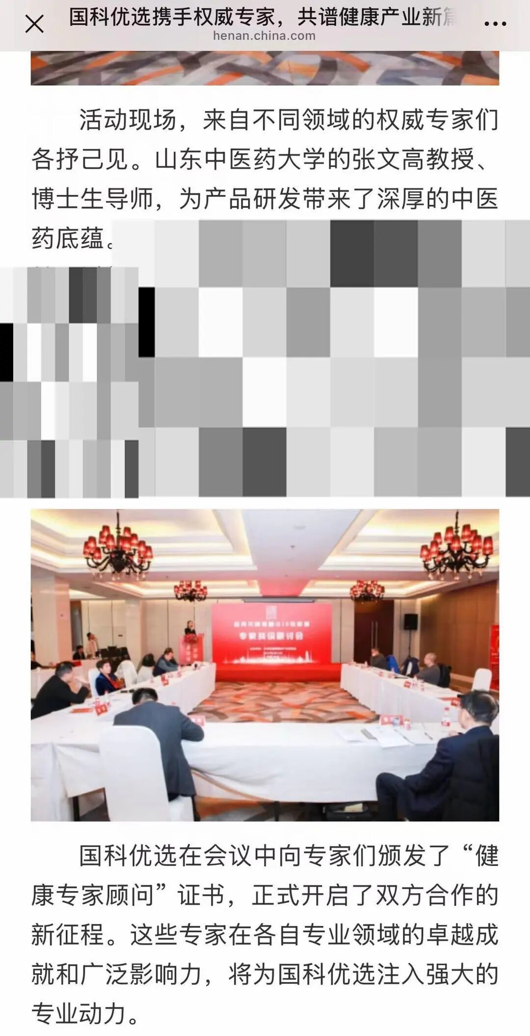 红星新闻记者检索公开报道发现,一篇题为“国科优选携手权威专家,共谱健康产业新篇章”的文章称,2025年2月23日,北京见证了“国科优选系列产品专家共识研讨会”的成功举办……山东中医药大学的张文高教授、博士生导师,为产品研发带来了深厚的中医药底蕴……国科优选在会议中向专家们颁发了“健康专家顾问”证书,正式开启了双方合作的新征程。这些专家在各自专业领域的卓越成就和广泛影响力,将为国科优选注入强大的专业动力。