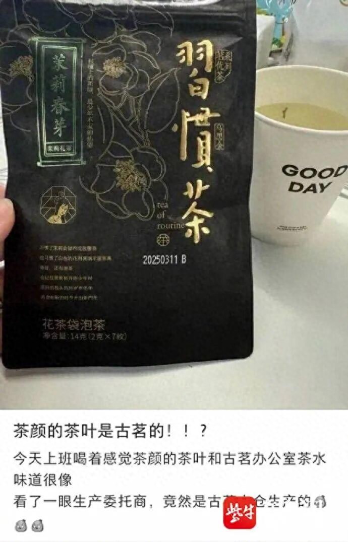 怪不得喝起来这么像,原来是同一家工厂生产的?”近日,有网友发帖称,其购买的茶颜悦色“习惯茶(茉莉春芽)”茶包,喝起来与古茗茶饮口味相似。查看产品包装后发现,该茶品的受委托生产商为浙江水仓食品科技有限公司,而这家公司同时也为古茗提供生产服务。