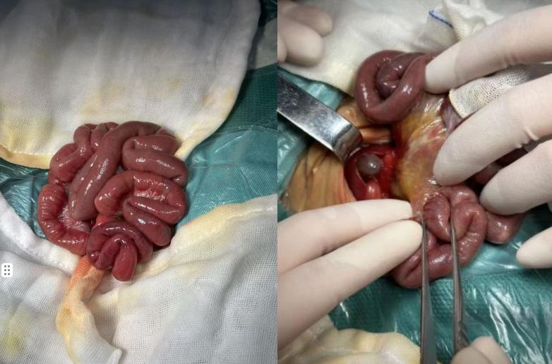 医疗团队争分夺秒为乐乐实施了急诊腹腔镜微创手术。手术中发现,乐乐的肠管及供应血管拧了一个“**花”。万幸,家属送医相对及时,经过手术和精心的护理,乐乐的肠管得以保住,后续已顺利康复出院。