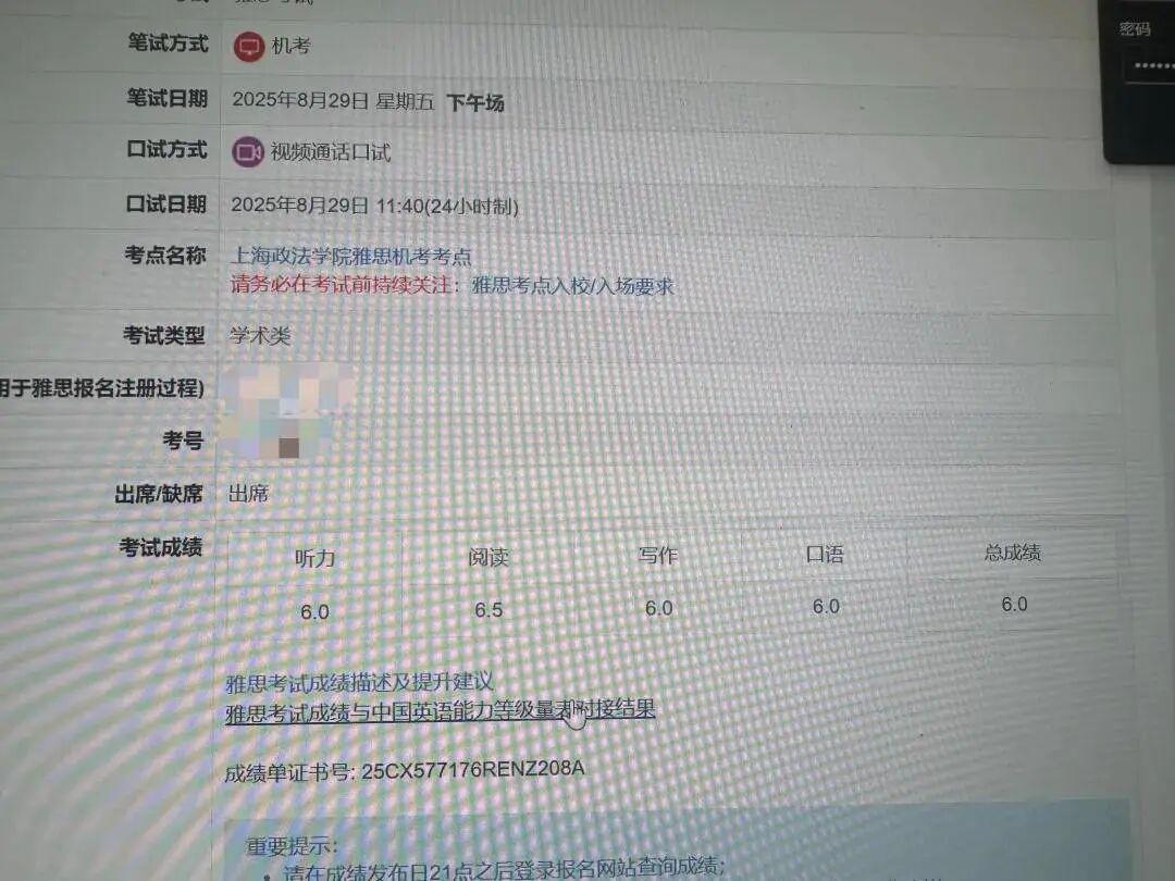记者以考生身份致电雅思主办方专项客服中心电话,询问因本次成绩错误已注册下一次雅思考试的考生,是否可办理退考,一工作人员回复称:“这个情况需要发邮件询问,我们这边是针对这一次技术故障办理的退费处理。” 受影响考生表示影响升学规划难以接受 希望有更合理化的赔偿方案 根据雅思官方公布的《分数变更相关问答》中看到,此次成绩误差事件的受影响时间范围是从2023年8月到2025年9月,全球仅有不到1%的雅思考试成绩受到影响。但是仍有不少考生对雅思官方的处理提出质疑,认为时隔两年多才发现并修正技术故障导致的成绩问题,响应过于迟缓。还有部分考生吐槽,成绩误差直接打乱了升学规划,额外产生的时间与经济成本未能得到合理补偿。 记者联系到受影响考生任先生,他告诉记者自己参加的是今年8月的雅思考试,是准备申请墨尔本大学的留学项目,该校入学对雅思小分要求为6分、总分要求6.5分。“考完大概两个月后,我收到了雅思主办方的邮件,说成绩有误,涉及阅读环节。”任先生表示,原本的阅读成绩是6.5分,更正后提升至7分,这让他的总分从6分达标至6.5分,完全满足学校的语言要求。  任先生8月份的成绩单
