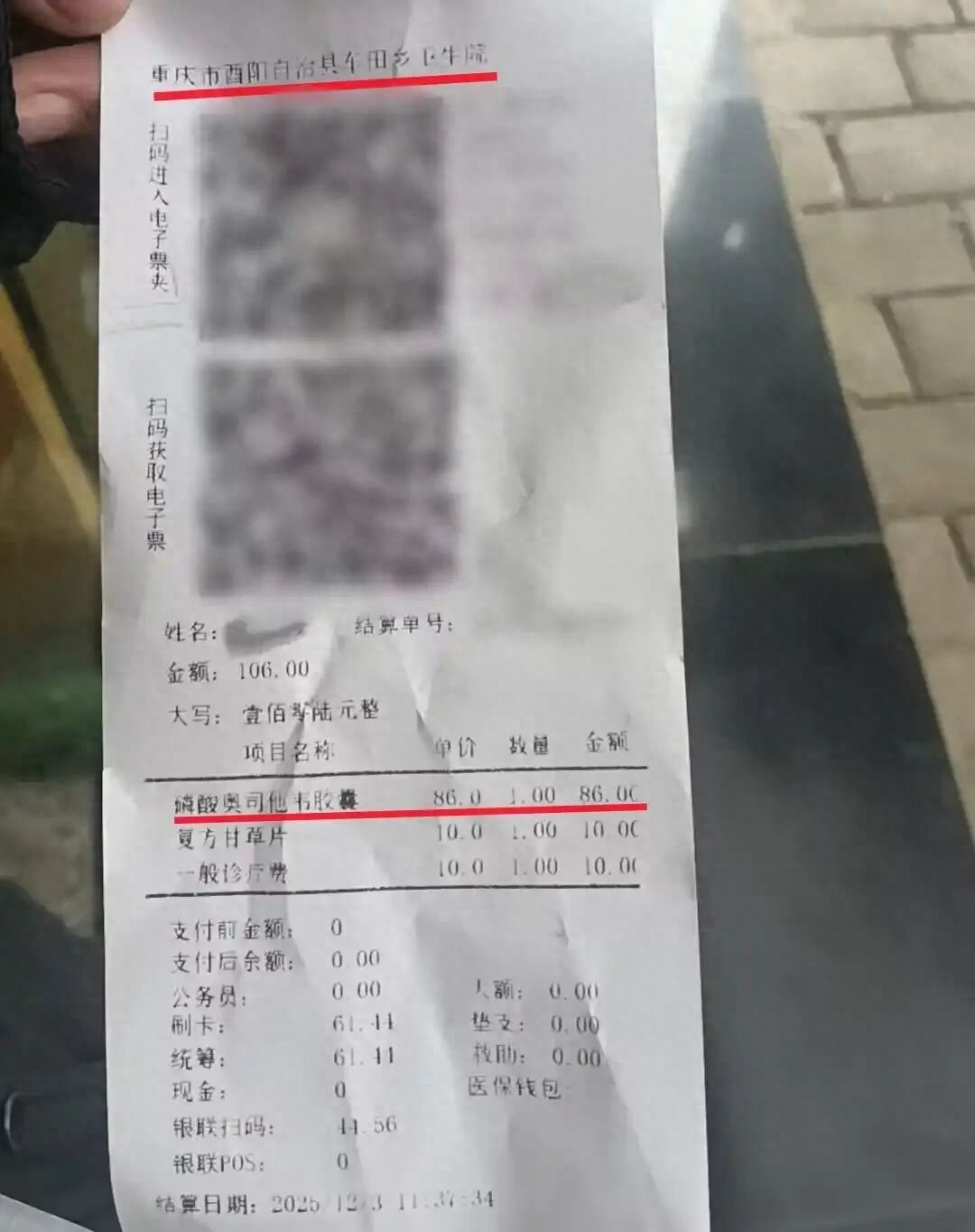 近日,重庆一名高三女生疑似患上甲流后,到医院就医时医生开一盒药86元,而同样的药网上9元,如此大的价格差距引发关注。 患病—— 高三女生就医时医生开一盒药卖86元 这名女生今年17岁,老家在重庆市酉阳县车田乡,目前在当地一家中学念高三。 女生父亲告诉记者,前几天女儿在学校出现感冒症状,后来到学校附近一家医院检查时,医生诊断疑似患上了甲流,给她开了药叫拿回学校吃,但服用后没有好转。 “12月2日,眼看情况不对,我叫她请假回老家继续治疗。”父亲介绍说,12月3日上午,女儿来到当地车田乡卫生院治疗,医生检查后给她开了两种药,一种是磷酸奥司他韦胶囊,价格是86元,另一种是复方甘草片,价格是10元,加上诊疗费,共计106元。  记者注意到,该磷酸奥司他韦胶囊系10粒装,由珠海同源药业有限公司生产,主要成分为磷酸奥司他韦,称能有效治疗甲型和乙型流感,要求在医师指导下使用,医嘱是每日2次每次1粒。  质疑—— 网上同药名同厂家同批次药只卖9元? 女生父亲说,得知女儿那盒药卖86元后,他认为太贵,便在网上搜了一下,发现有的药店仅卖9元。  记者在淘宝网输入同厂家同规格型号的药品搜索发现,一家知名大药房旗舰店打出的广告语是“连锁药房 正品保障”,也是一盒10粒价格显示9元起,客服称买得多还有优惠,“假一赔四。”有网友评论称“与药店同款,但比药店便宜很多”。 记者对比查询发现,该厂家生产的该处方药在京东平台上的售价是9.8元/盒,在美团上的售价是8.5元/盒。 回应—— 多部门称平台采购价是多少就卖多少 同一种药,为何出现这么大的价格差距? 记者联系上了酉阳县车田乡卫生院,一名女医生称,当天那名女生确实在他们医院看过病,那盒治疗甲流的磷酸奥司他韦胶囊也是他们卖给她的,“我们采购价是多少就卖多少,药品没有利润的。” 至于在哪里采购的,这种药由谁定价,该女医生称自己不清楚,要问相关部门。 酉阳县发改委一名男性工作人员称,他们不参与药品定价,平时主要负责诸如公交车、天然气等民生类定价工作。 酉阳县卫健委工作人员回应称,药品不由他们定价,目前他们已得知车田乡卫生院一盒磷酸奥司他韦胶囊卖86元的事,正在进一步了解中。 酉阳县医保局招采中心相关工作人员介绍说,药品系各大医院自己在“重庆市药品和医用耗材招采管理子系统”上采购,采购价是多少就卖多少,系0差率。 针对该女生的实际情况,该工作人员在该平台查阅后回应称,该药在平台上的挂网价确系86元一盒,车田乡卫生院卖的也是这样的价格,从市场行为来看,该卫生院没有违规之处,具体情况尚需进一步了解。 至于为何网上卖9元左右,采购平台上却卖86元,该人士称他们解释不了。 走访—— 零售药房大多缺货,治疗甲流的药物还有多种 既然如此,磷酸奥司他韦胶囊在零售药房的现状如何呢? 12月3日下午,记者在重庆市两江新区走访了万和医药连锁店、泉源堂以及健之佳等药房,有的工作人员称没有销售过珠海同源药业的磷酸奥司他韦胶囊,有的称早就卖完了,俏得很,这段时间买的人也多。 记者同时发现,除该药外,治疗甲流的还有多种品牌的胶囊,价格大多在60元至70多元之间,最贵的一种245.95元。 提醒—— 多通风勤洗手,出门戴口罩尽量避免人群密集处 专家介绍,甲流(甲型H1N1流感)是由甲型流感病毒引起的急性呼吸道传染病,具有较强传染性,症状主要表现在,突发高热(体温≥38℃)、头痛、肌肉酸痛、乏力、咳嗽、咽痛,部分伴随腹泻或呕吐,该症状与普通流感相似,但传播更快,易引起群体性感染,且病毒变异可能导致季节性流行或大流行。 重症风险人群主要是5岁以下儿童、65岁以上老人、孕妇、慢性病患者(如心肺疾病、糖尿病)、免疫功能低下者。 首都医科大学附属北京友谊医院主治医生杨梓琪分析称,甲流病毒传染性强,主要通过飞沫传播,患者咳嗽、打喷嚏产生的飞沫携带大量病毒,在家庭相对封闭环境中易扩散。家人与患者密切接触,很容易吸入飞沫感染。此外,病毒可在物体表面存活一段时间,家人接触被污染物品后再触摸口鼻眼等部位,也会引发感染。而且家庭环境中人员流动频繁,若不注意预防,病毒很容易在家庭成员间传播,尤其是儿童、老人等抵抗力较弱者,感染后可能出现严重症状。 杨医生建议,家人要督促患者按时服药,观察病情变化,若症状加重及时就医。在生活细节上,餐具、毛巾等生活用品要分开使用,定期消毒。室内保持通风,每天至少通风 2-3 次,每次30分钟左右。家人可进行适量运动,如室内瑜伽、原地慢跑等,以增强体质。还可在医生指导下,根据自身体质选择一些增强免疫力的营养补充剂。若家人出现疑似甲流症状,应及时自我隔离并就医诊断,通过综合措施预防甲流在家庭内传播。 此外,河南郑州一家医院的主任医师刘全德建议,注射流感疫苗是最好的方法,一般要在流感季节来临之前1-3个月注射,免疫力可持续半年至1年。流感疫苗虽然不能完全避免再患流感,但可以降低重症患者的发生率。注意保暖,避免遭受风寒侵袭;饮食清淡,适当增加水果、新鲜蔬菜的摄入,避免熬夜、过度劳累,保持充沛的体力;不吸烟,少饮酒,不随地吐痰;避免到通风不好的公共场所和人群密集的地方;出门佩戴口罩;勤洗手,多消毒,尤其在接触了被病人污染的物品后更应如此。 来源:华商报大风新闻