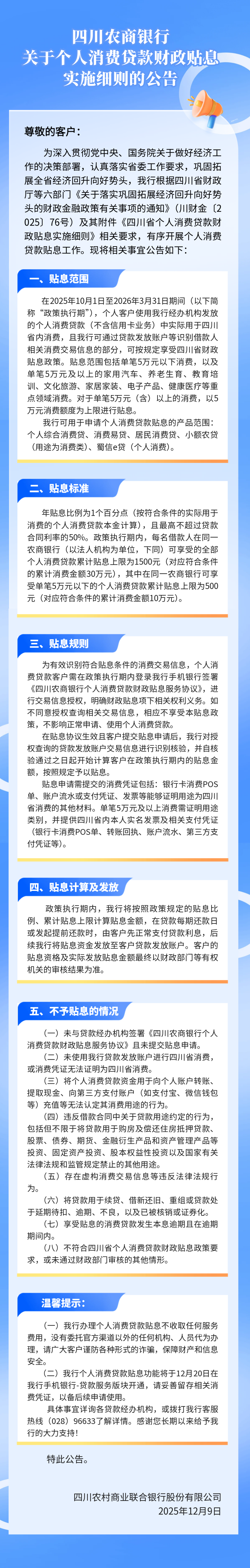 [消费者之家] 关于个人消费贷款财政贴息实施细则的公告