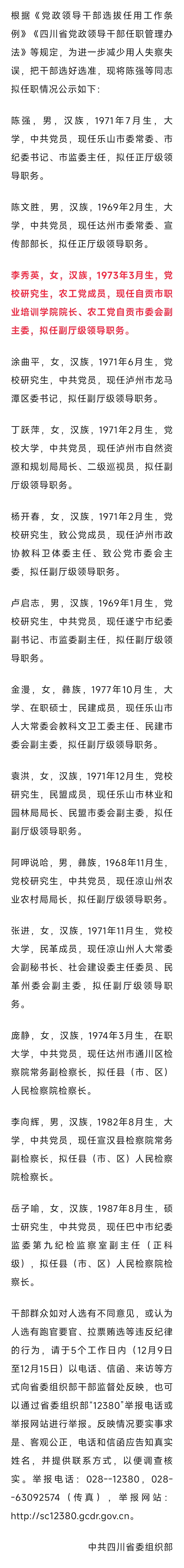 [盐都杂谈] 最新!自贡1人拟任副厅级领导职务