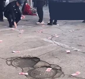 12月24日晚,武汉市徐东附近,一女子因与情侣酒后发生争吵,当街抛撒大量百元现金并坐在地上哭泣。