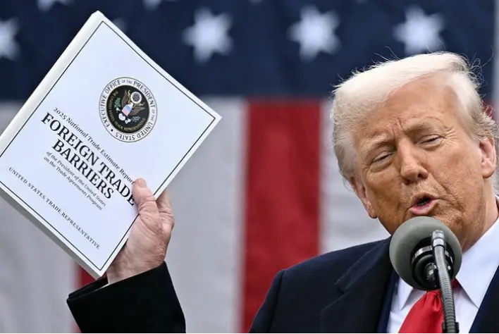 ▎2025年4月2日,美国总统特朗普公布“解放日关税”政策,全球对贸易战的恐慌情绪蔓延。图源:法新社/盖蒂图片社