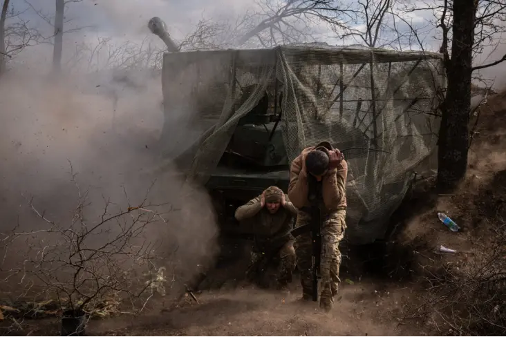 ▎2025年春,乌克兰士兵在顿涅茨克地区向俄罗斯目标发起攻击。图源:纽约时报