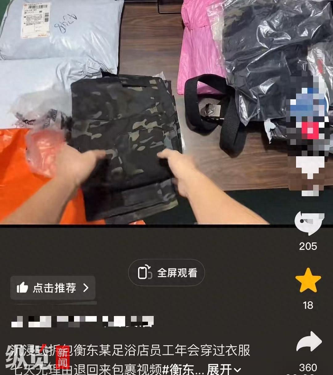 近日,安徽合肥一位网店店主马先生在社交平台发帖称,湖南衡阳衡东县某足浴店员工在其网店购买了24套服装用于年会表演,表演结束后22套服装以“7天无理由”进行退货。 1月4日,马先生告诉记者,退回的衣服有明显穿着痕迹,还有香水味、汗味,该足浴店发布的年会视频证实店员们穿过了这些服装。涉事足浴店店长阳先生表示,购买服装和退货均是员工个人行为,本来门店决定将所有衣服买下,但网店店主在网上发布的视频对门店造成影响,店员遭到网暴,他们已聘请律师,准备追究网店店主的法律责任。 马先生介绍,12月21日至22日,他经营的服装网店陆续接到139元的迷彩服订单,共计20单24套衣服,收货地都位于湖南衡阳衡东县某足浴店。正常发货后,从12月28日晚至29日中午,店铺收到22套衣服的退货退款申请,原因均为“7天无理由”。收到退回的服装后,他们拆开包裹后发现,衣物吊牌虽然还在,但衣服明显有穿着痕迹,还有香水味和汗味,已经影响二次销售。他们向平台进行了申诉,但申诉结果是“支持买家退货退款”。 马先生表示,12月31日下午,他无意间在短视频平台刷到了这家足浴店的年会表演视频。画面中,多名登台表演人员身穿的正是从其店铺购买的服装。“这个都是贴身的衣服,T恤还有裤子,所以我当时非常愤怒。”马先生随后将此事发布在社交平台,引发网友关注。 马先生称,视频发出后,1月1日,网店客服曾接到该足浴店打来的电话询问如何处理此事,并提供了一个电话号码,让网店老板联系协商处理,他添加该号码微信一直未获通过。1月3日,网店客服人员又接到涉事足浴店店长的电话希望协商,添加微信后,该店长称其发布的视频侵犯了肖像权,对企业造成了影响。马先生表示,他的诉求很简单,希望对方支付服装费用将衣物买下,方可删除视频,但未获进一步回复。