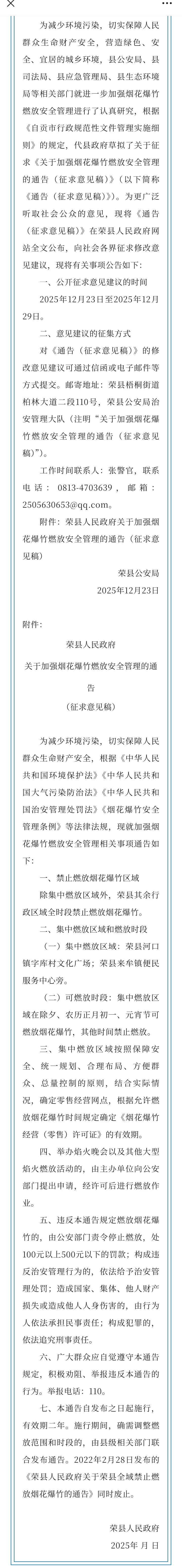 [盐都杂谈] 荣县烟花爆竹燃放政策会有调整吗?官方最新回复来了…