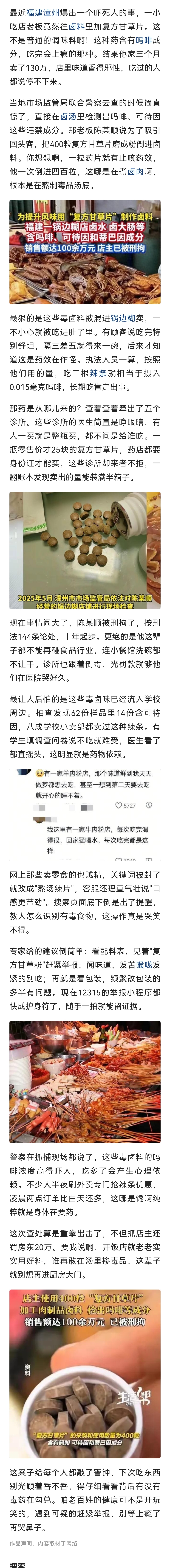 [盐都杂谈] 胆大包天!漳州一男子竟将400粒复方甘草片加进卤味,狂卖100多万