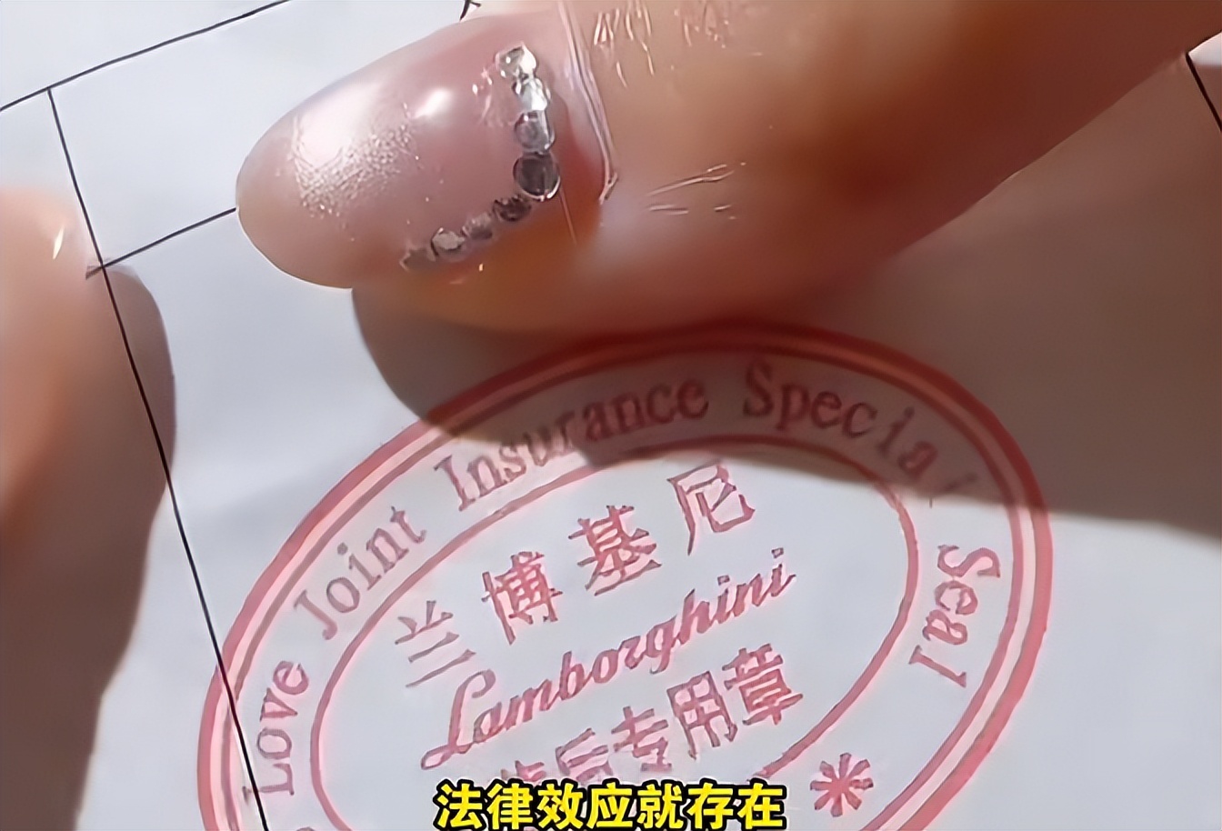 视频中,他购买的这款手表标价1980元,表身有“999足金”的字样,并配有一张“鉴定证书”。直播间导购展示的收据上,还印着“兰博基尼售后专用章”字样的红章。