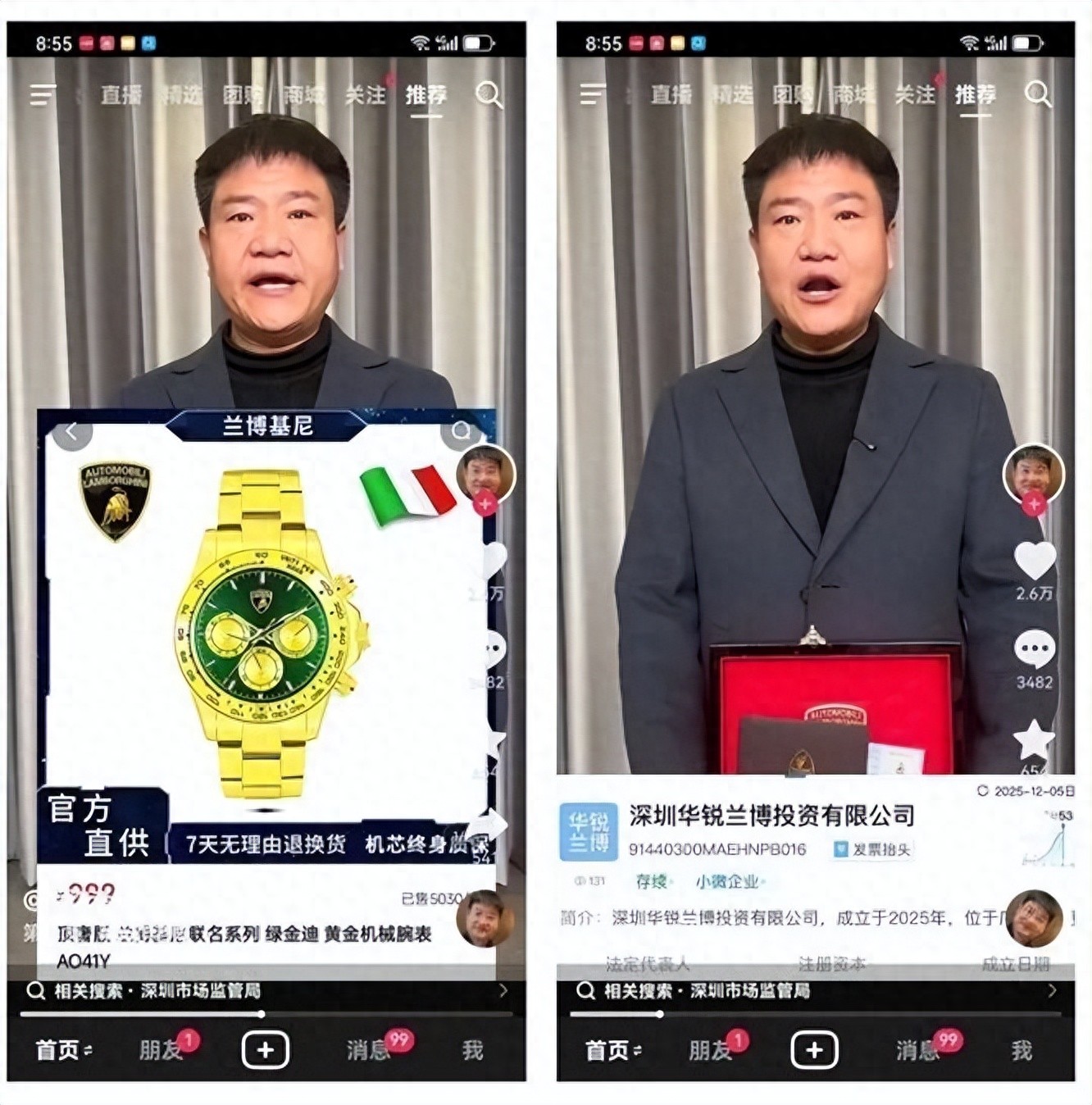 “反诈老陈”公开质疑,该店铺所在的深圳华锐兰博公司售假,此类“三无产品”利用消费者对国际品牌的信任,以低价诱导购买,实际价值与宣传严重不符。