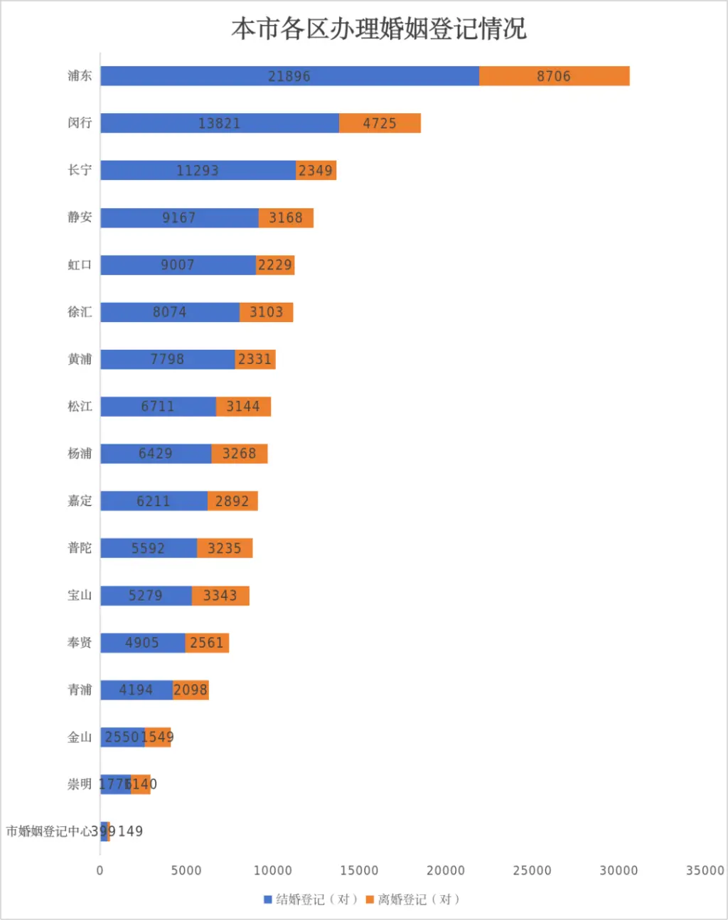 2025年,上海全市共办理婚姻登记175092对,其中结婚登记125102对、离婚登记49990对。具体而言,全市共办理内地居民婚姻登记173030对,其中结婚登记123406对、离婚登记49624对;办理涉外国人、涉港澳台居民及华侨结婚登记2062对,其中结婚登记1696对、离婚登记366对,共涉及85个国家和地区。