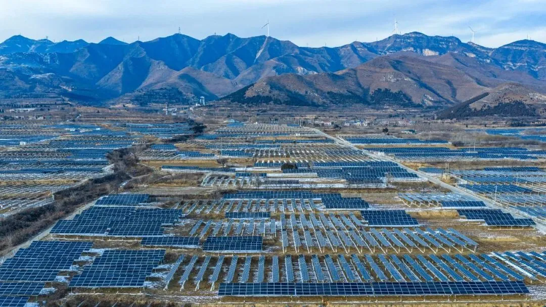 1月21日,在山西省运城市芮城县国家光伏领跑技术基地,连绵的光伏阵列在白雪映衬下熠熠生辉,与蜿蜒的中条山共同勾勒出清洁能源发展的壮美画卷。常奇摄(中经视觉)