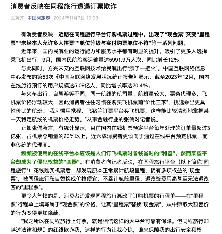 看看这些图,你明明付的是真金白银的“现金票”,能积里程、能享权益。同程转头就给你换成更便宜的“里程票”,差价悄咪咪装进自己口袋。