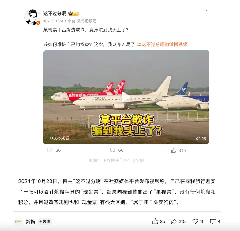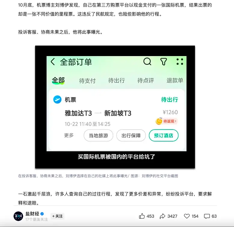 更绝的是,他们还伪造行程单,把里程票的价格打印成现金票的价格。这操作,胆大心黑,机票博主、金融从业者都纷纷中招,普通人怎么防?防不胜防!
