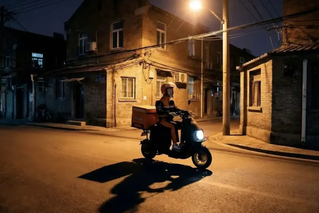 街上已经空了,他是唯一的动静。在这个“春节不打烊”的夜晚,他并没有意识到自己构成了某种风景,只是像往常一样拧紧油门,消失在巷口的夜色里,赶往下一个需要“团圆”的家。