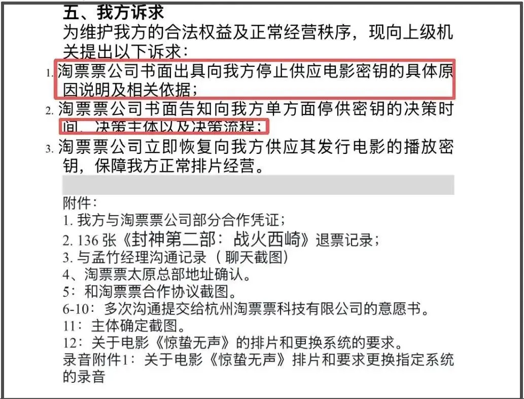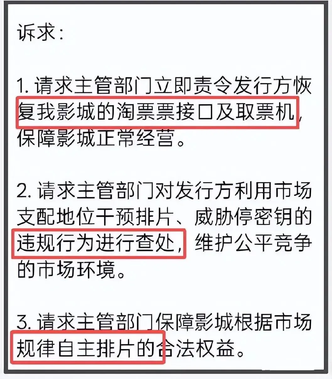 即便闹翻之后,影院的诉求简单得让人心酸:第一,请把接口和取票机还给我们,让我们能做生意;第二,请查处这种拿密钥当“尚方宝剑”威胁人的行为;第三,请让我们根据观众到底爱看什么,来安排放什么电影。
