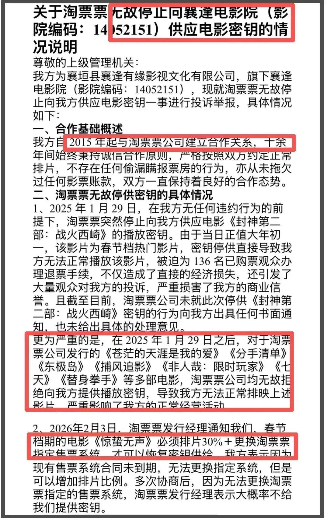山西众多影院开始举报淘票票。