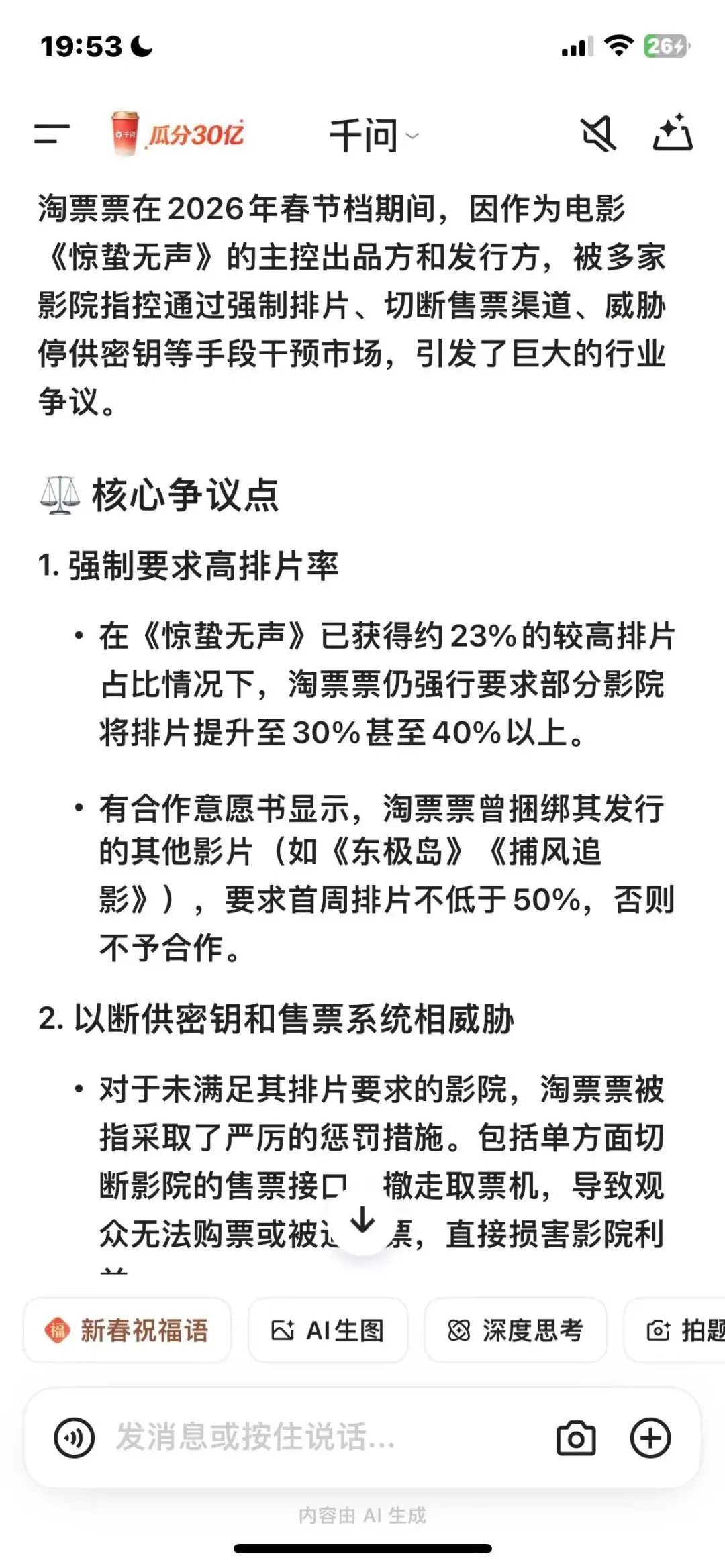 当“强制排片”的聊天记录、停供密钥的“情况说明”、以及要求排片50%的求和意愿书像雪花一样在行业群里曝光时,他们点燃的不是春节档的票房**,而是舆情反噬的引信。