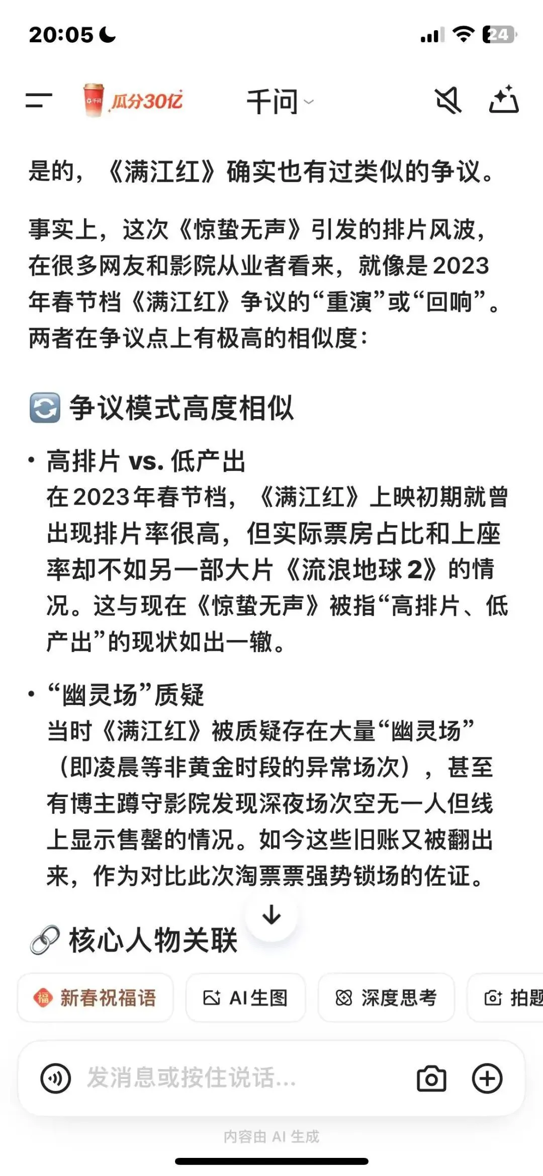 2023年春节档,《满江红》那诡异的高排片和“幽灵场”争议,就让无数人心生疑窦。