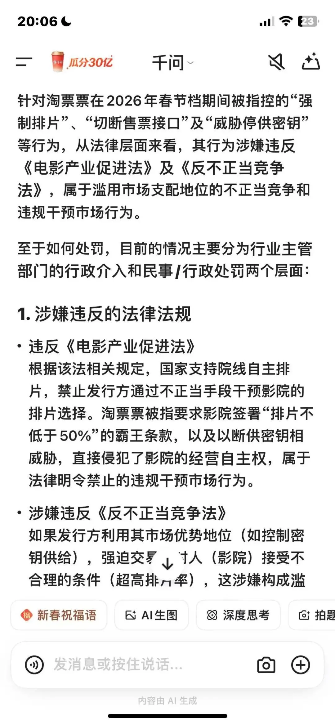 此事绝非简单的商业纠纷。《电影产业促进法》明确保障影院排片自主权;《反不正当竞争法》剑指滥用市场支配地位。