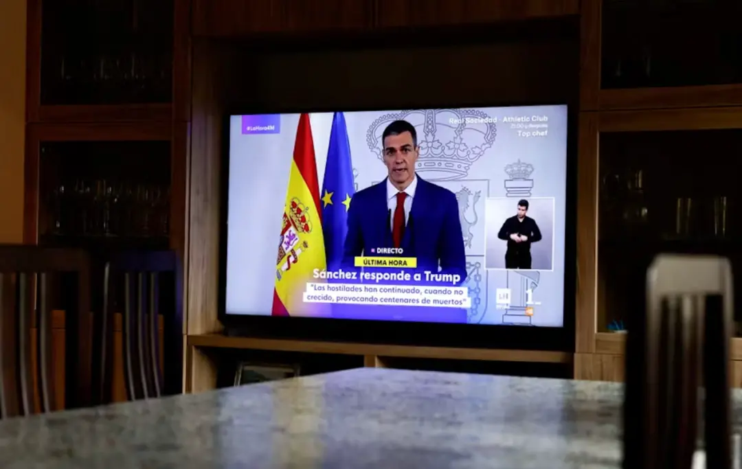 3月4日,西班牙首相桑切斯通过电视发表官方声明,重申西班牙反对美以对伊朗发起的军事行动。(图源:路透社)
