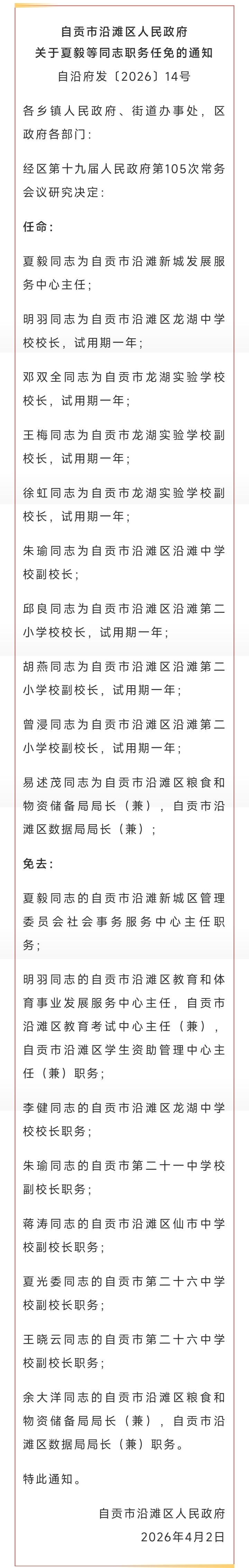 [盐都杂谈] 自贡一地发布一批人事任兔